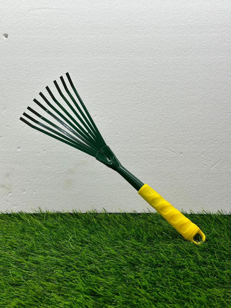 The 9-Tine Leaf Rake Hand Tool is a compact and efficient garden rake designed for small-scale leaf collection, light soil loosening, and debris cleanup in tight or delicate spaces. Made with high-quality metal tines and a comfortable ergonomic handle, this handheld rake is perfect for use in flower beds, raised planters, bonsai setups, and potted plants. Its lightweight yet sturdy design makes it an essential tool for precise and controlled raking in both indoor and outdoor gardens.